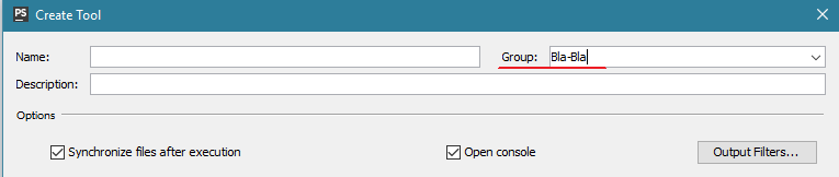 目前,下拉列表中唯一可用的组是“外部工具”。我如何创建新的小组?这样我就可以根据不同的项目对命令进行分组了吗?