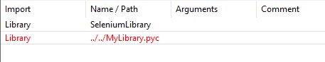 Library Selenium2Library在测试套件的设置部分,你会看到红色的"selenium2library“,修正后的黑色。
