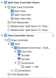 例如,如果左窗格中有一个NSOutlineView,只需将其宽度约束设置为固定值即可。