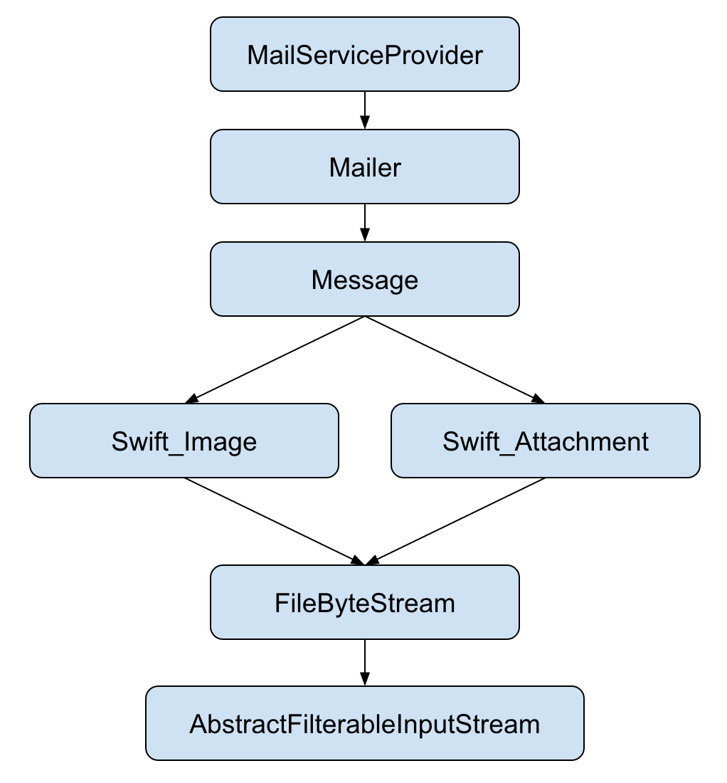 }我想扩展AbstractFilterableInputStream类,并在AbstractFilterableInputStream被SwiftMailer调用时调用这个修改过的写方法。