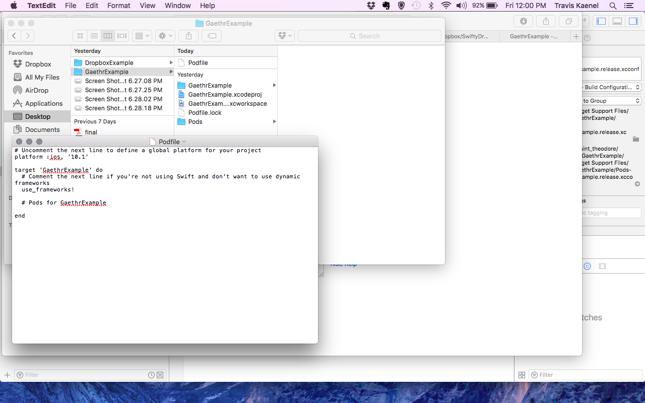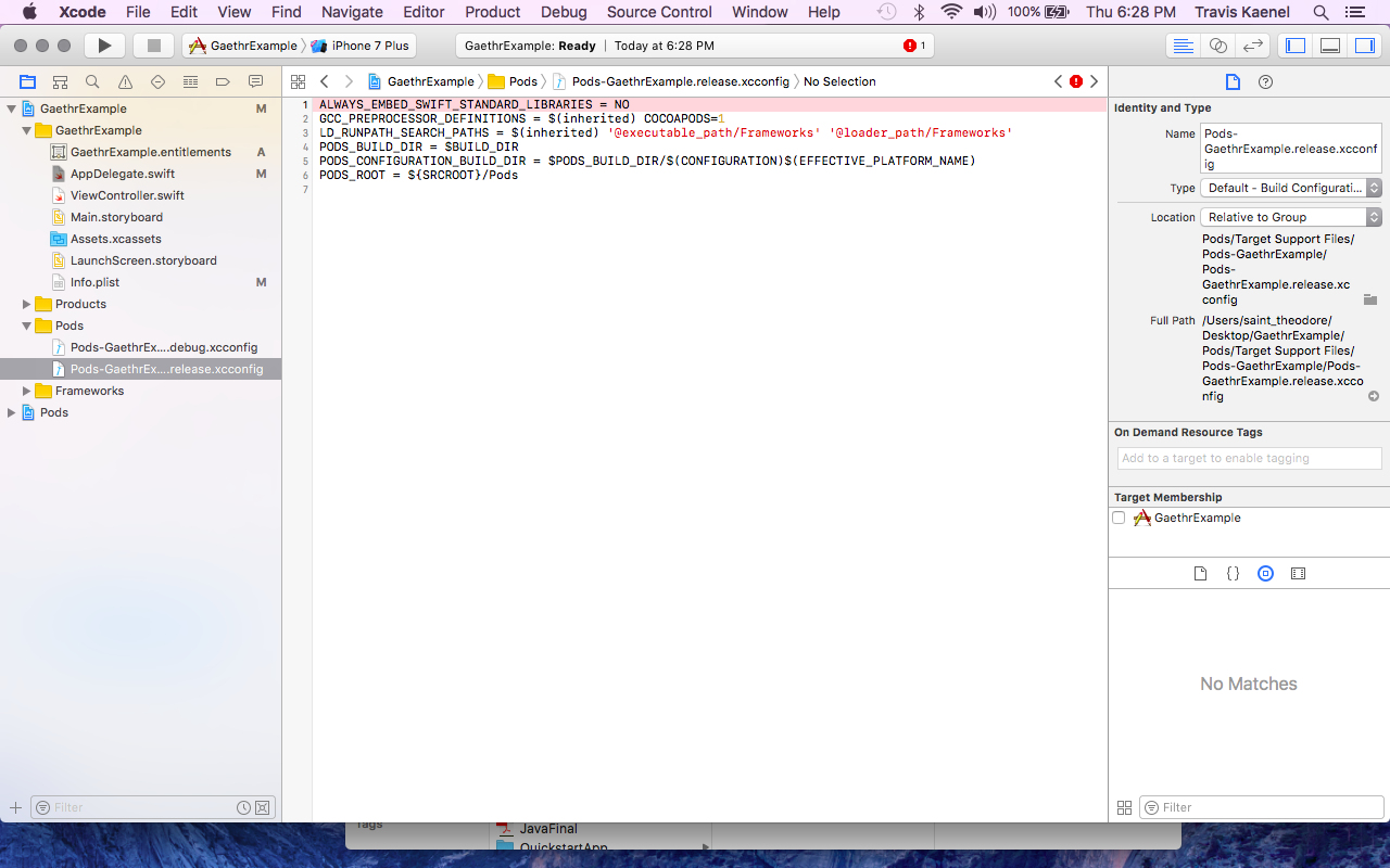 在CocoaPod下面为# Pods for GaethrExample添加一行