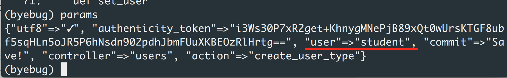 byebug ## it will bind your termianl and help you to see the parameter
