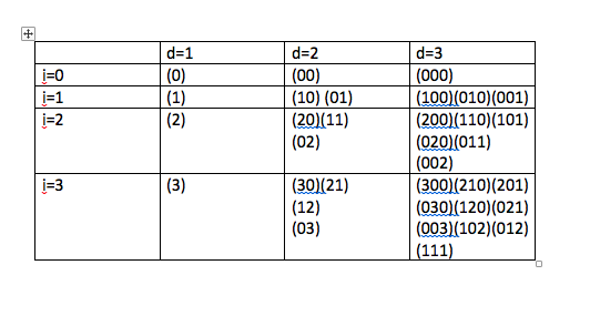 N(x)''N(y)N(z) N(x)'N(y)'N(z) N(x)'N(y)N(z)' N(x)N(y)''N(z) N(x)N(y)N(z)' N(x)N(y)N(z)''我希望有一个输入(i,d)的函数,以便在下表中告诉我这些模式: