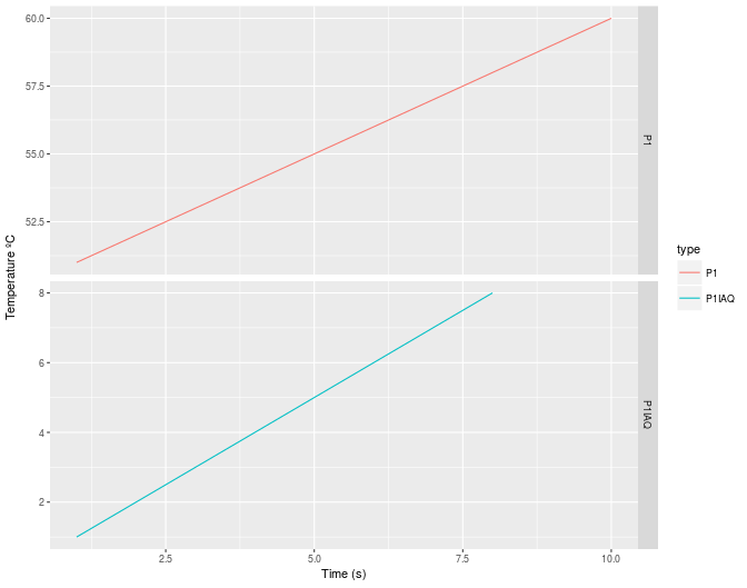 df = data.frame(Time=c(P1$Time,P1IAQ$Time), values=c(P1$Temp,P1IAQ$Temp),type=c(rep("P1",length(P1$Time)),rep("P1IAQ",length(P1IAQ$Time))))