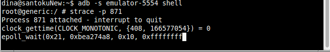 adb -s emulator-5554 shell在仿真器shell之后,我想编写strace命令,如图所示:
