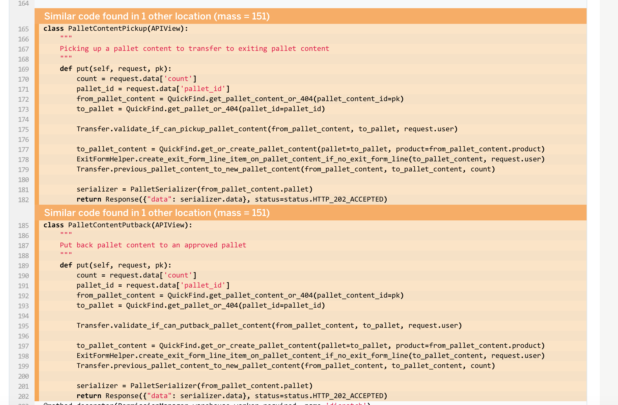我使用代码转换,它抱怨说,我在两个不同的基于类的视图中有两个函数,它们太相似了。
