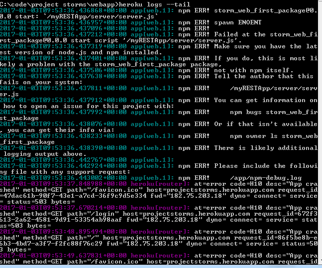 我使用这个Node.js 教程 .And构建了一个REST实现,现在我在heoroku上部署它时遇到了问题,本地工作很好。