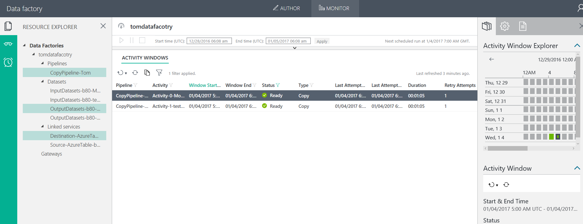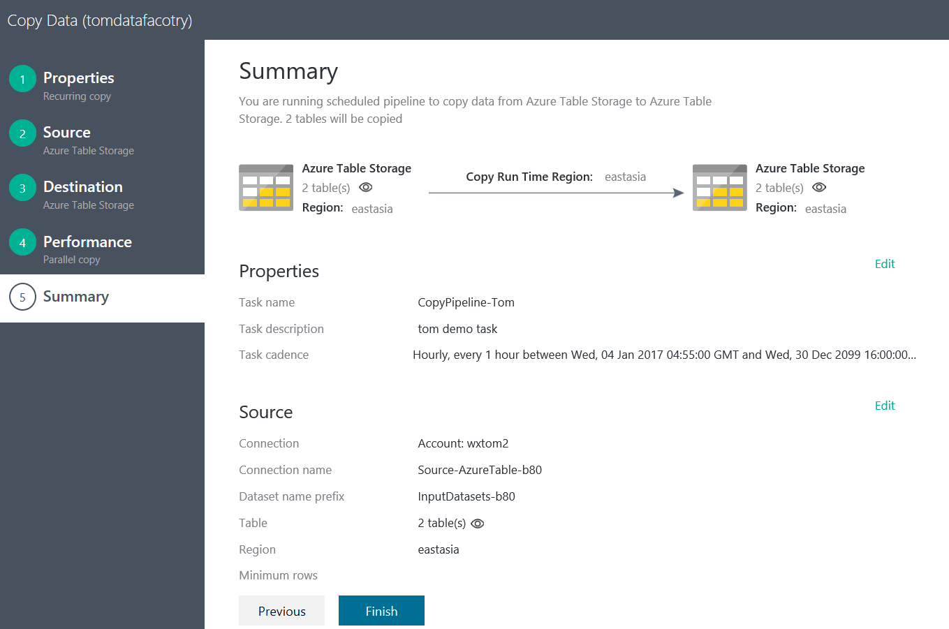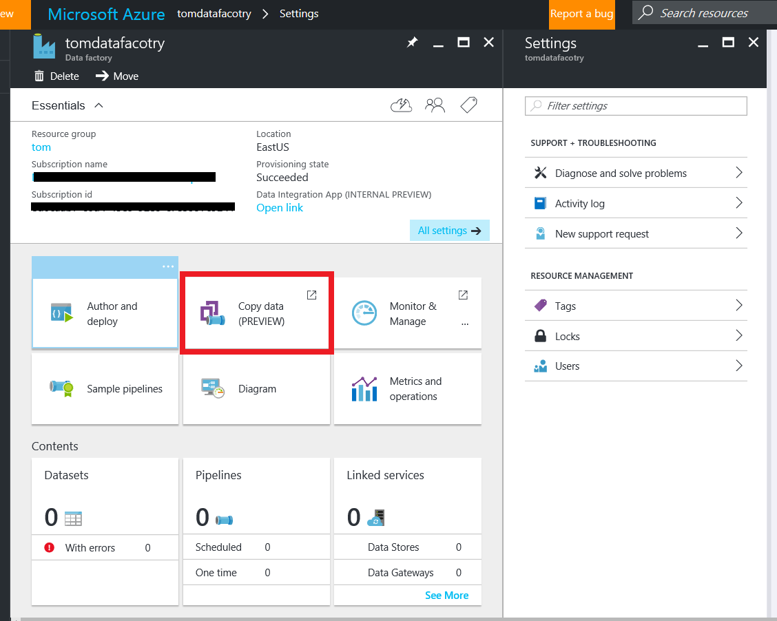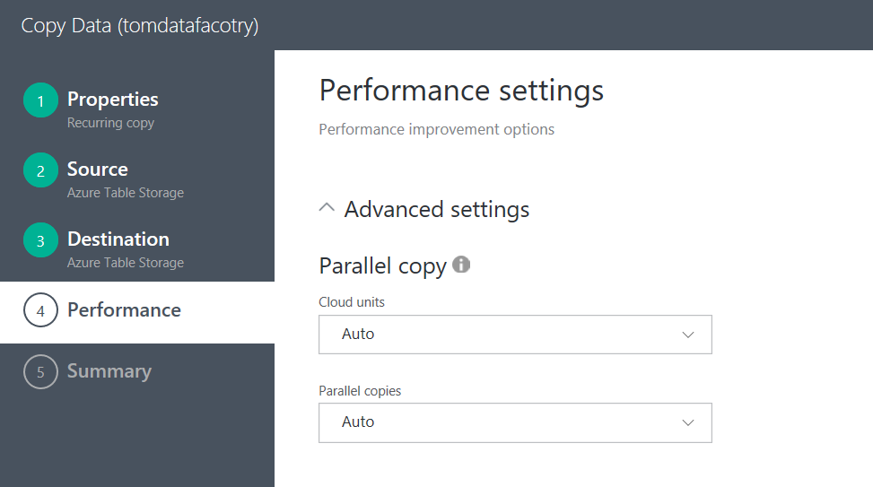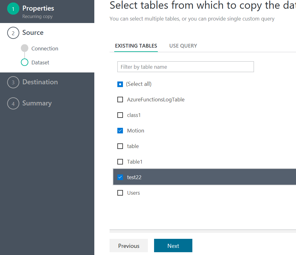 正如我所知道的,我们可以很容易地在蔚蓝门户上使用Azure数据工厂来实现这一点。请试着按照我的详细步骤。
