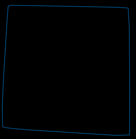 如何在Matlab中找到这个“正方形”中四个角的坐标?我试过corner,regionprops('Extrema')和detectMinEigenFeatures,但没有运气。问题是蓝色方块不是一个完美的正方形,所以我需要某种锐化的边缘技术或者更“智能”的找角算法来找到它们。