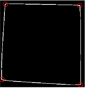 或者,如果假设角点相对保证接近图像角,则通过从图像角点执行上述步骤并求出最小值,限制自己在各自的图像象限中找到形状角,然后重复这4次(即每个角)。