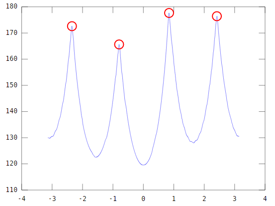 假设你是在“图像”模式下做这件事,而不是解析的,计算出从质心到形状上每个像素的距离,然后把它绘制成角度的函数(就好像你从质心和一条水平线开始,然后旋转这条线,并在每个角度上注意到‘半径’的长度)。你的图形应该是一条有4个局部峰的曲线,然后你可以分离并追溯到它们的坐标。