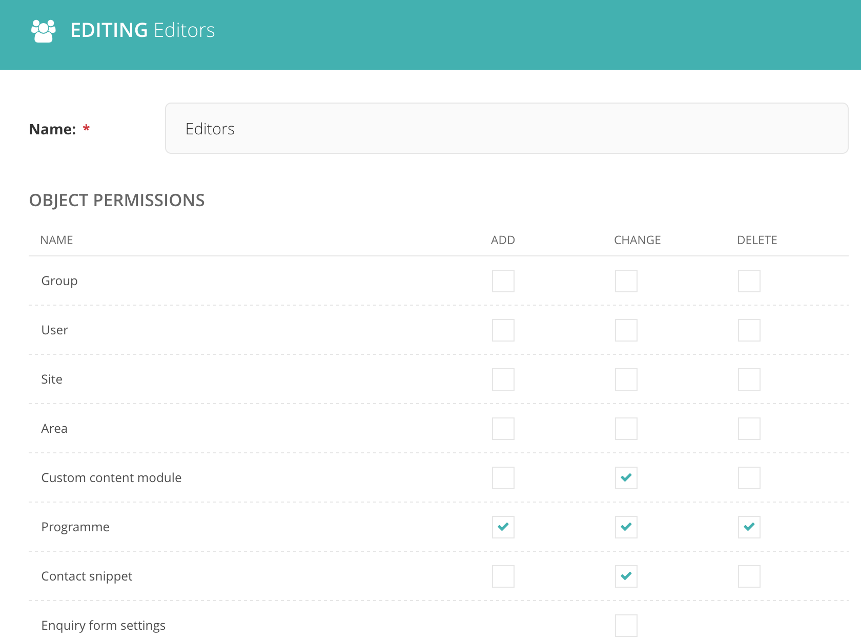 但是..。确实需要定义自己的权限助手类吗?在我看来,您只需在Wagtail管理中创建一个新的(或编辑现有的)组,并将所需的对象权限授予您的Participant模型。