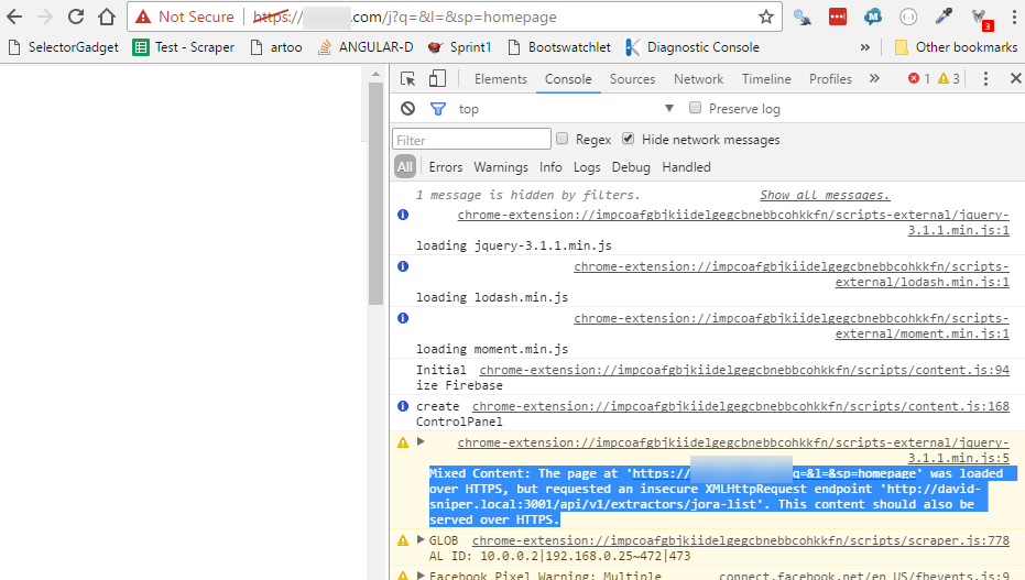 在过去,我能够通过阅读这篇文章how-to-get-chrome-to-allow-mixed-content来解决这个错误。