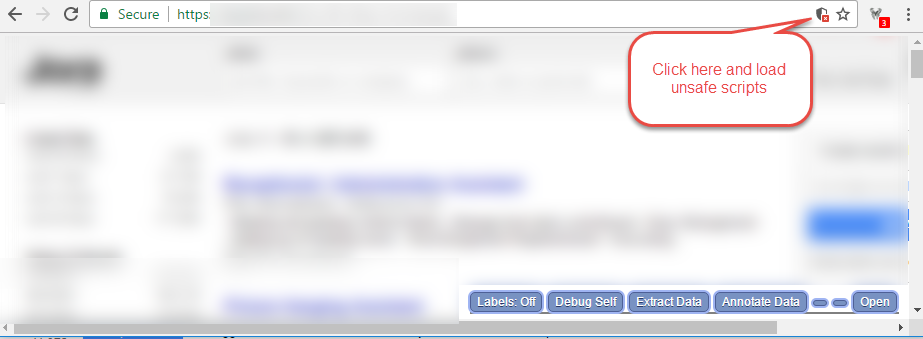 "C:\Program Files (x86)\Google\Chrome\Application\chrome.exe" --allow-running-insecure-content --disable-web-security --user-data-dir=C:\_chrome_data单击“盾牌”,我注意到该屏蔽在55版的chrome中不再可用,除非包含命令行中列出的设置。