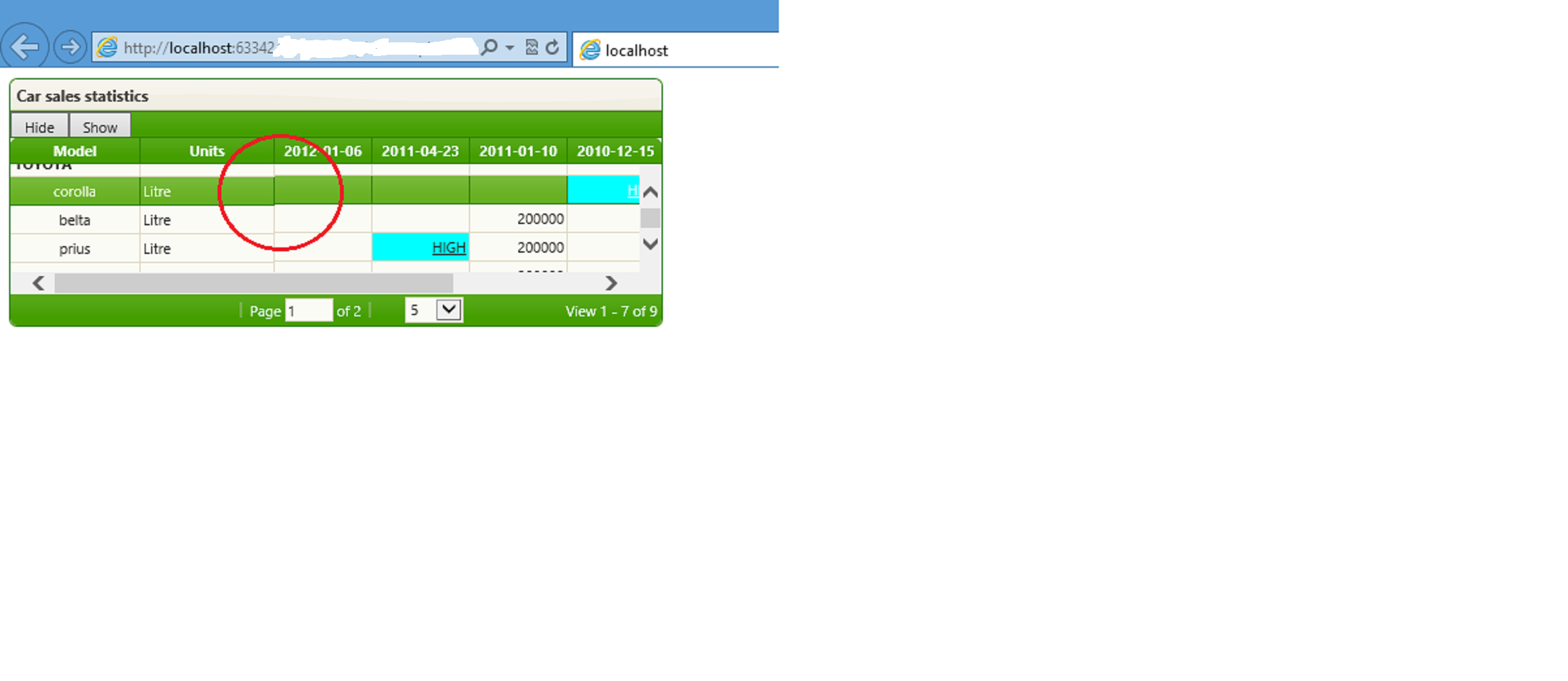 在小提琴密码上,jqpivot显示了汽车的销售数据。下面的问题可能是css问题或配置问题。当我在IE中运行相同的代码时,网格的高度设置为100。