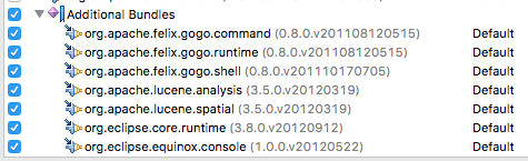 然后转到Run Configuration> Bundles选项卡>按Add,然后添加以下每个包:
