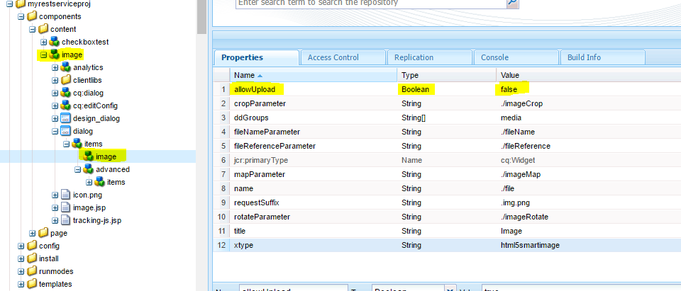 将基础映像组件的副本复制到您的项目中,并在对话框html5smartimage allowUpload="{Boolean}false"中添加allowUpload="{Boolean}false"小部件的一个属性,该属性将阻止本地图像上传到您的对话框。请参考下面的截图。
