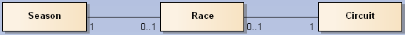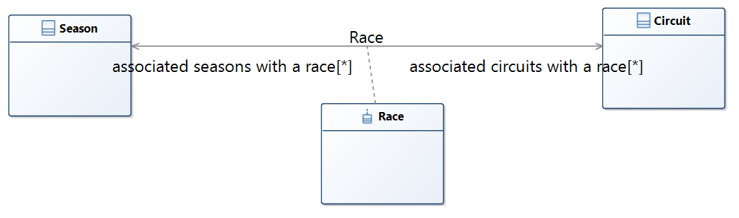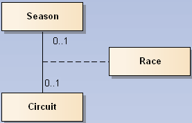 若要使Race按需要成为关联类,请使水平连接器破折号并删除多重性。上面显示的是一种三元连接器(请参阅讨论)。