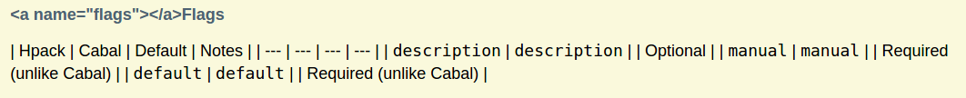 但是可以看到,例如在hpack上,Hackage似乎不支持与GitHub相同的表语法。