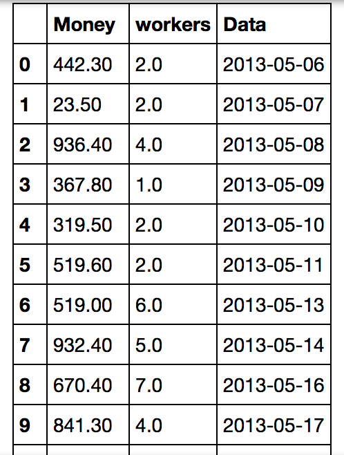 有大量的每日频率行(数据列)。我想转换的数据在一个星期的基础上,意味着频率不是日记,但现在是每周。还有这个钱和工人就是“周薪”。