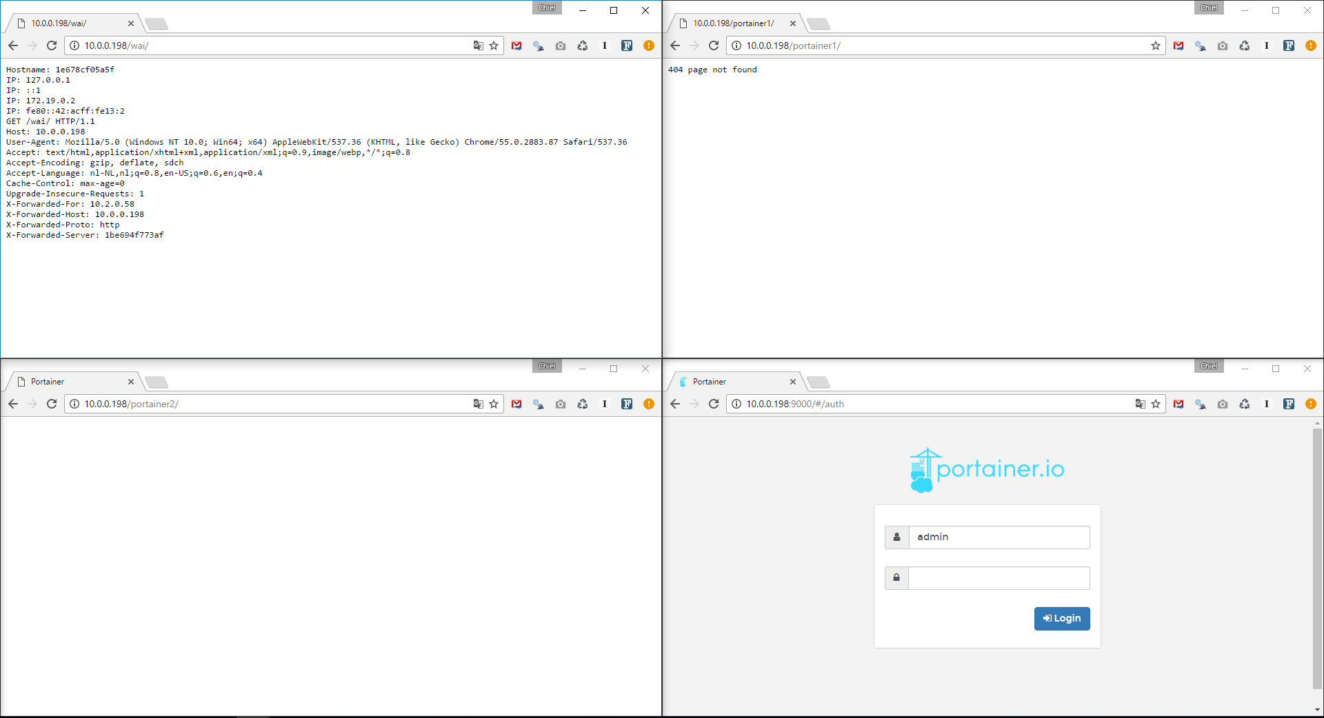 例如,我创建了一个用于启动whoamI容器的docker文件(参见下面),并创建了5个维护者容器(这样人们就可以重新创建这个场景)。我希望woamI可以在/wai上使用,而维护者可以在/portainer1上使用。