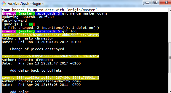 我不明白我的合并为什么要更新一个提交..。它看起来更新提交添加颜色,而不是合并主硬币。当我试图合并这些分支时,崇高不会弹出。有人能帮我吗?此外,当我键入git提交时,我拥有: