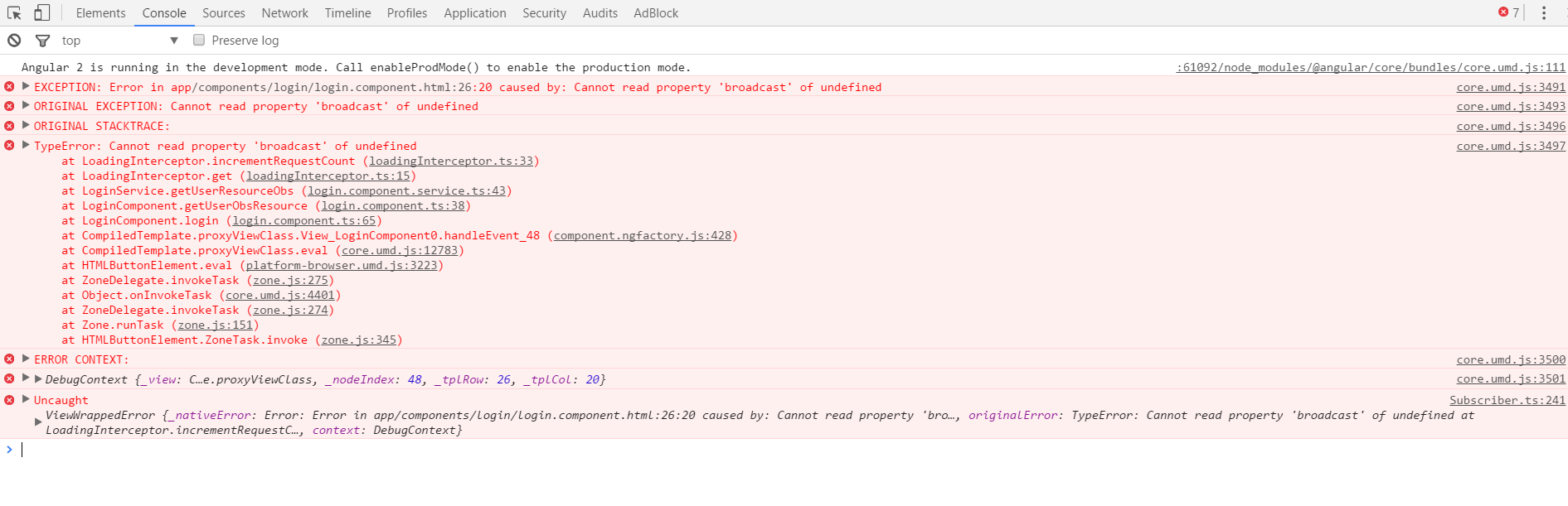 这是我的http扩展程序,我无法从这里将消息广播到App组件,但是我能够将从子组件中的消息广播到App组件,请查看图像中的错误信息和项目结构