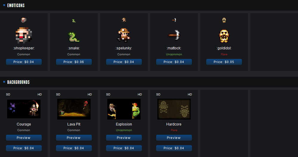 如果你检查这个游戏的现有物品,你会发现有8张交易卡,5个表情符号和4个背景。