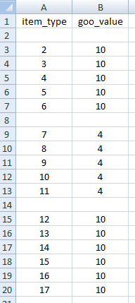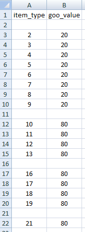 我已经写下了goo_value的值范围,[0 ; 30] of item_type的游戏斯佩伦基 (appID=239350)。如果下面没有显示一个值,那么它等于零。