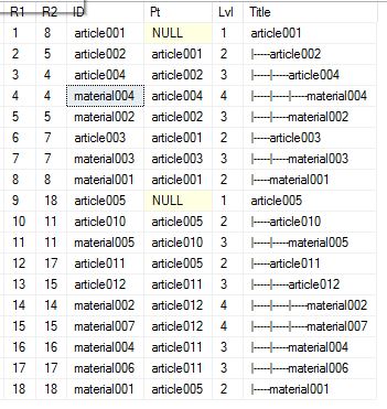 Declare @Top varchar(25) = null --<< Sets top of Hier Try 'article002'