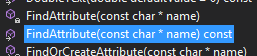 }如您所见,我使用FindAttribute方法,没有编译错误。如果您仔细观察,您会发现我正在使用const,这是关键。