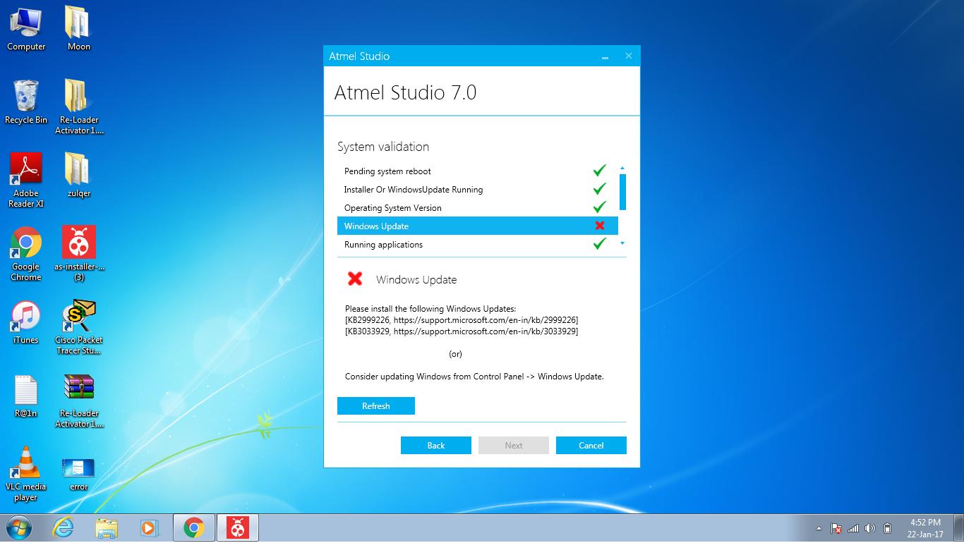 我正在尝试安装Atmel Studio 7,我已经从这里下载了安装程序。但是当我试图安装这个软件时,我发现了一个错误:-