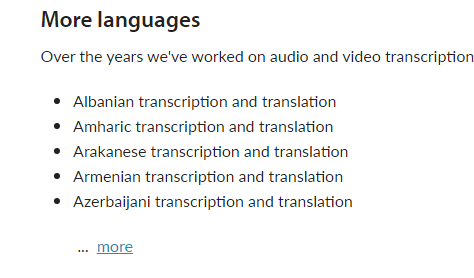 <p>over the years we've worked on audio and video transcription projects involving many other languages including:</p>