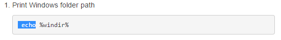 echo %windir%这里,它被解释为http://spec.commonmark.org/dingus/上的一个代码块