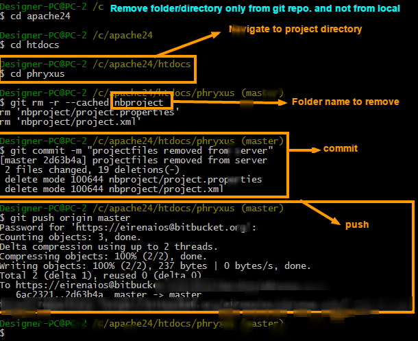 > git push如果想要删除任何特定的文件夹或文件,那么