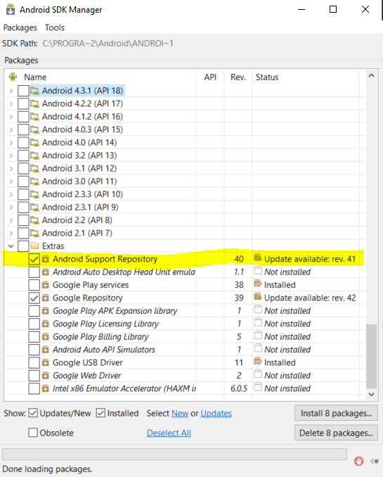 请确保安装了它,并安装了适用于您的应用程序的修订版。还要确保您的构建目标与您安装的SDK修订版相匹配。