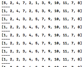 5,2,4,7,2,1,3,9,10,11,7,8 1,2,3,2,7,5,4,9,10,11,7,8 1,2,2,3,7,5,4,9,10,11,7,8 1,2,2,3,4,5,7,8,7,11,10,9 1,2,2,3,4,5,7,8,7,11,10,9 1,2,2,3,4,5,7,7,8,9,10,11