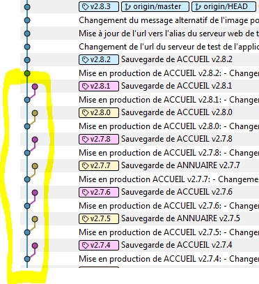 如果有许多标记要移动,您可以使用git tag -l > tags.txt生成它们的列表,并将其保存到tags.txt文件中。在文本编辑器中打开文件并删除不想修改的标记(如果问题中的图像显示当前历史记录行,则只有v2.8.2和v2.8.3正确放置;从文件中删除它们)。保存文件,然后运行: