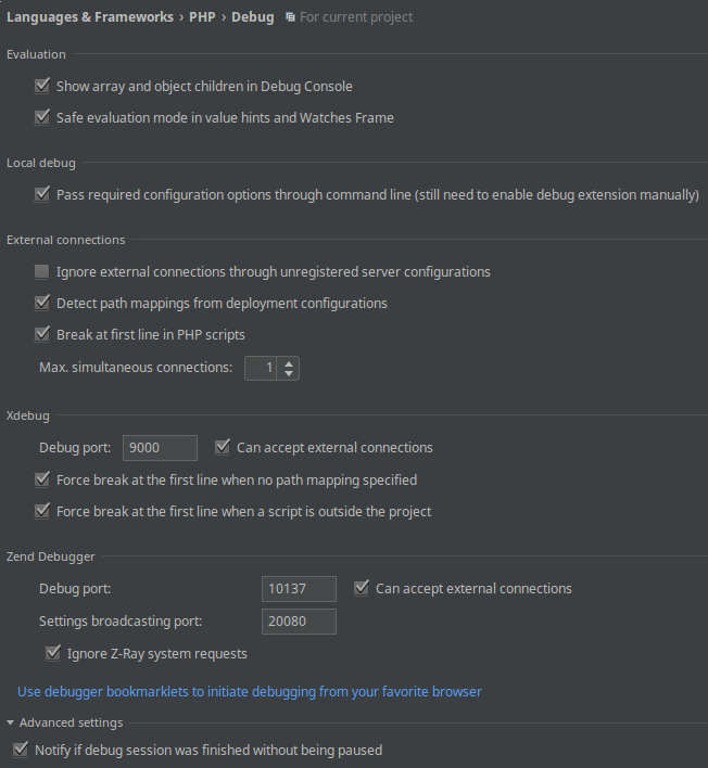 我使用IDE键生成的Xdebug & Zend调试器书签 Intellij。