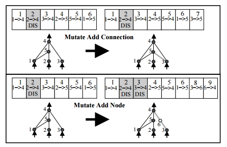 我一直在阅读关于增强拓扑的NeuronEvolution,有一件小事情一直困扰着我。当我阅读肯尼思·斯坦利的“整洁的文件”时,我想到了这个数字: