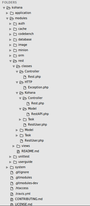 我是科哈纳框架的新手。我需要为我的应用程序实现rest。我已经从https://github.com/SupersonicAds/kohana-restful-api下载了rest,并将其放在本地主机中。在模块下。现在文件结构是