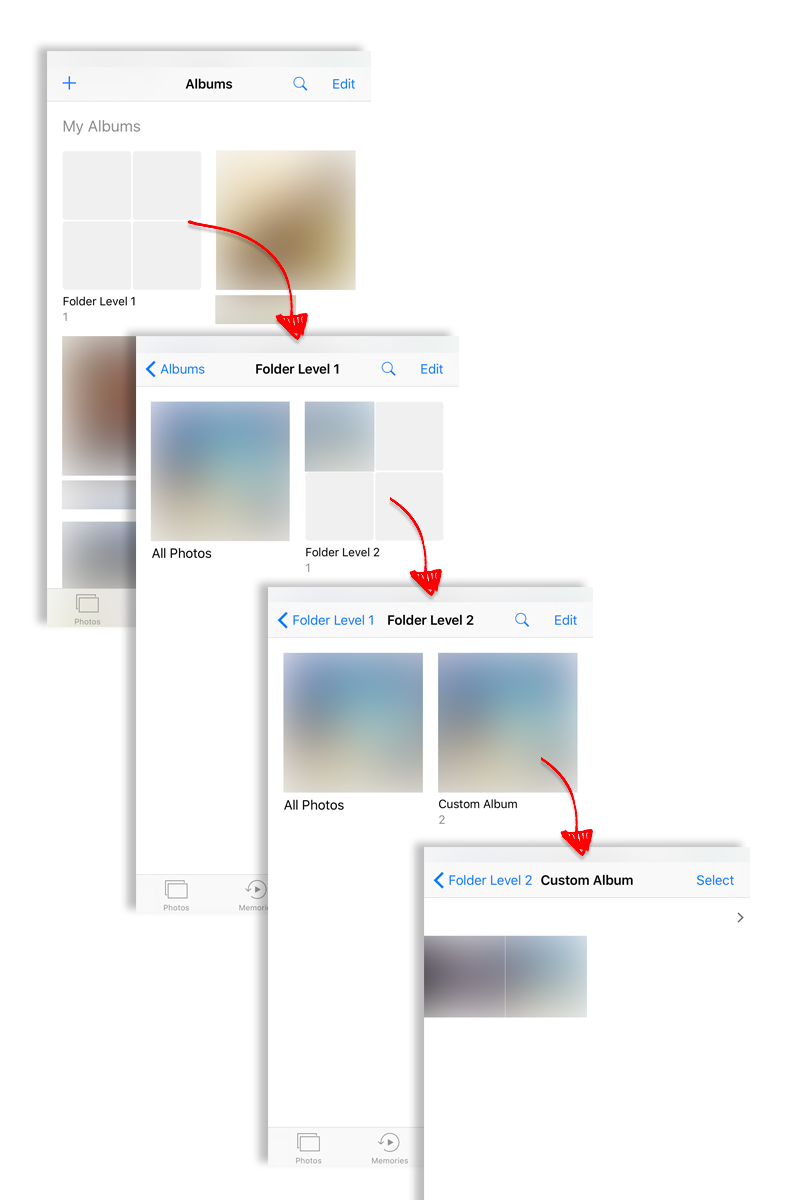 因此,即使在上面的示例项目崩溃,如果我有嵌套文件夹在照片库。大多数应用程序似乎忽略了这些文件夹,而根本不显示这些文件夹。