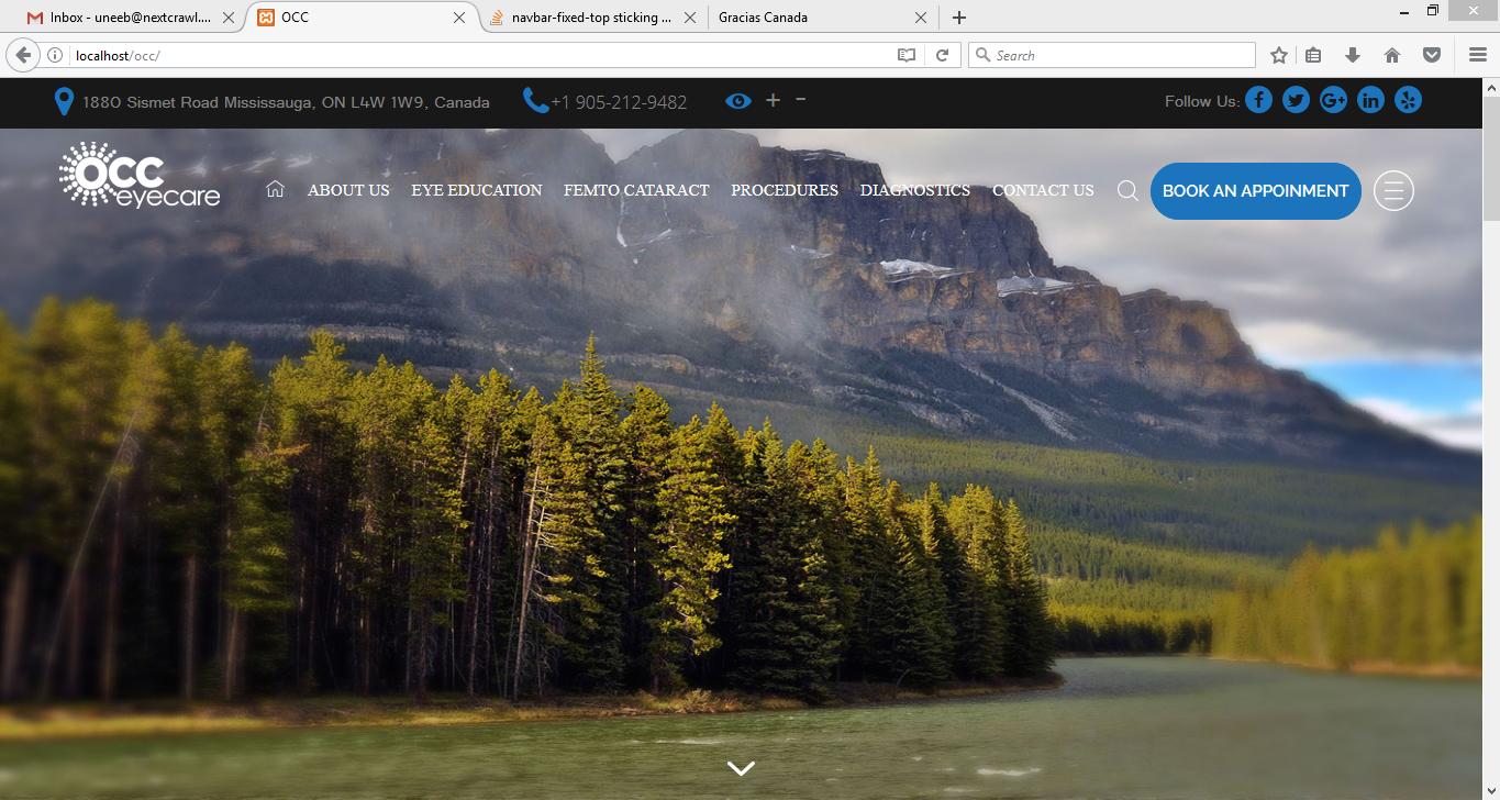 我已经设计了一个网页的结构,其中有一个顶部的顶部,然后有一个滑块,在滑块里面有一个肚脐!现在的问题是导航条应该是粘稠的,但是当我添加类nabar固定的顶部时,它会到达顶部,并与顶部重叠,让我用可视化的例子向您展示。