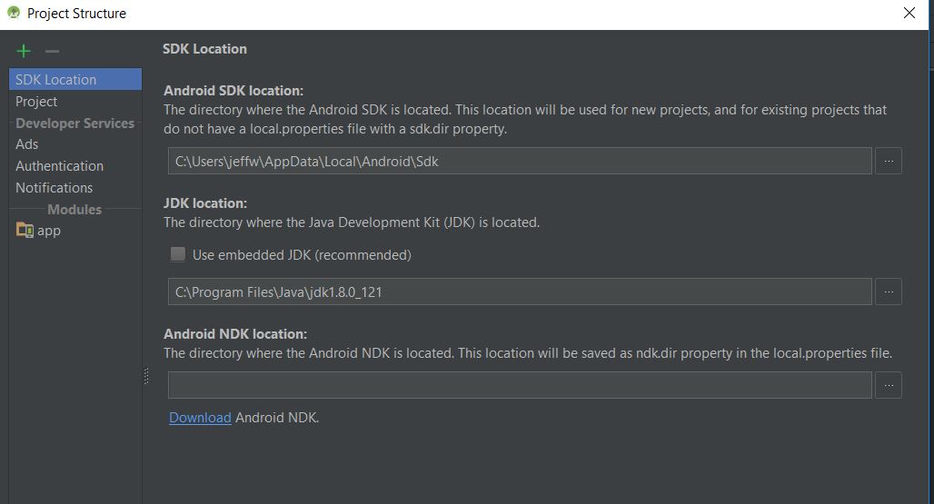 更新2我要死在这里了。我重新安装了Java和Android。我相信我已经找到了JDK和SDK的正确路径。我尝试了一个新项目..。不会编译..。同样的事。我很感激你的建议。