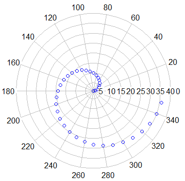 polar.plot(1:36, seq(0,350,by=10), rp.type='s', point.col='blue')希望这个函数有一些调整大小的参数。
