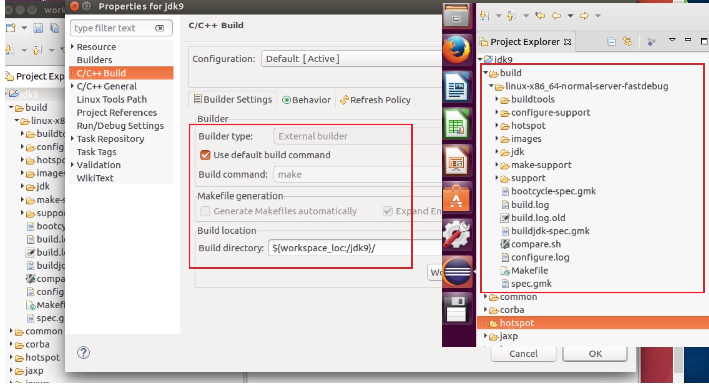 我想调试热点源代码,比如在本机代码中设置一些断点来学习它。因此,我通过Eclipse成功地构建了openjdk 9源代码,下面是构建设置和生成的输出。