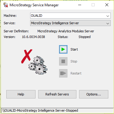 当试图通过MicroStrategy服务管理器或Windows启动智能服务器10.6服务时,会发生以下错误: