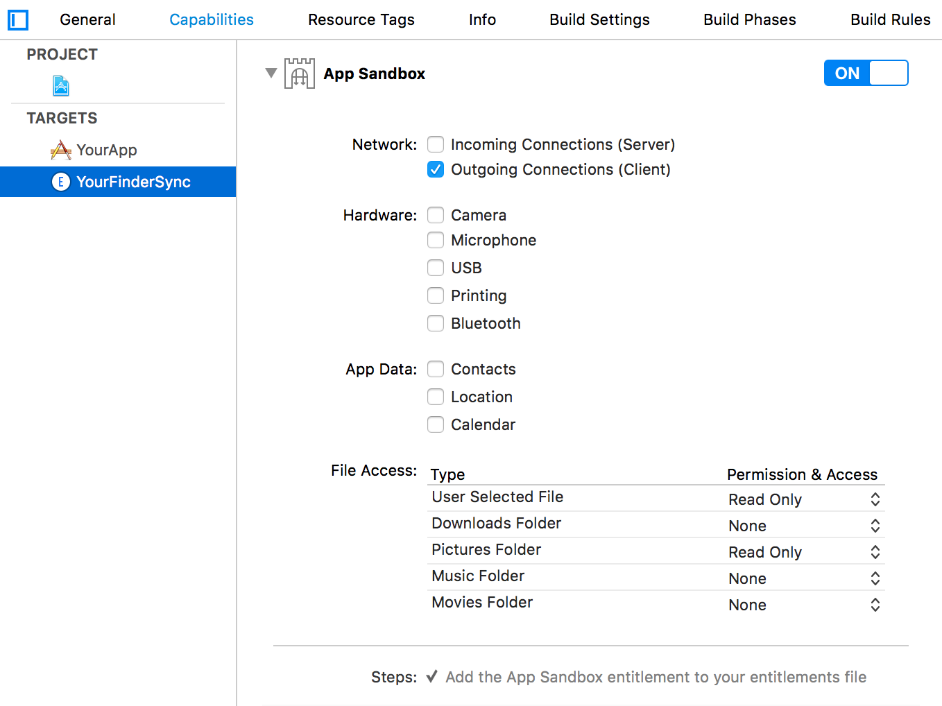 我的问题是,我们是否需要在“info.plist”应用程序的或FinderSync扩展中添加任何元素来允许扩展执行REST调用,还是有其他方法来解决这个问题?