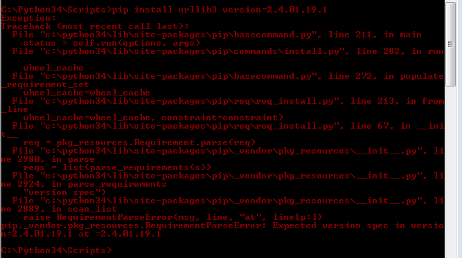 pip install urllib3 version=2.4.0不会做你想做的事。您告诉pip要做的是安装urllib3并安装一个名为version的包。如果你想要一个特定的版本,你需要写
