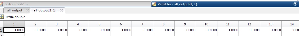 我有一个名为(all_output)的矩阵(它是由36个用户组成的输出训练和测试神经网络)。该矩阵包含36个单元,每个单元具有504值(如所附图像所示)。